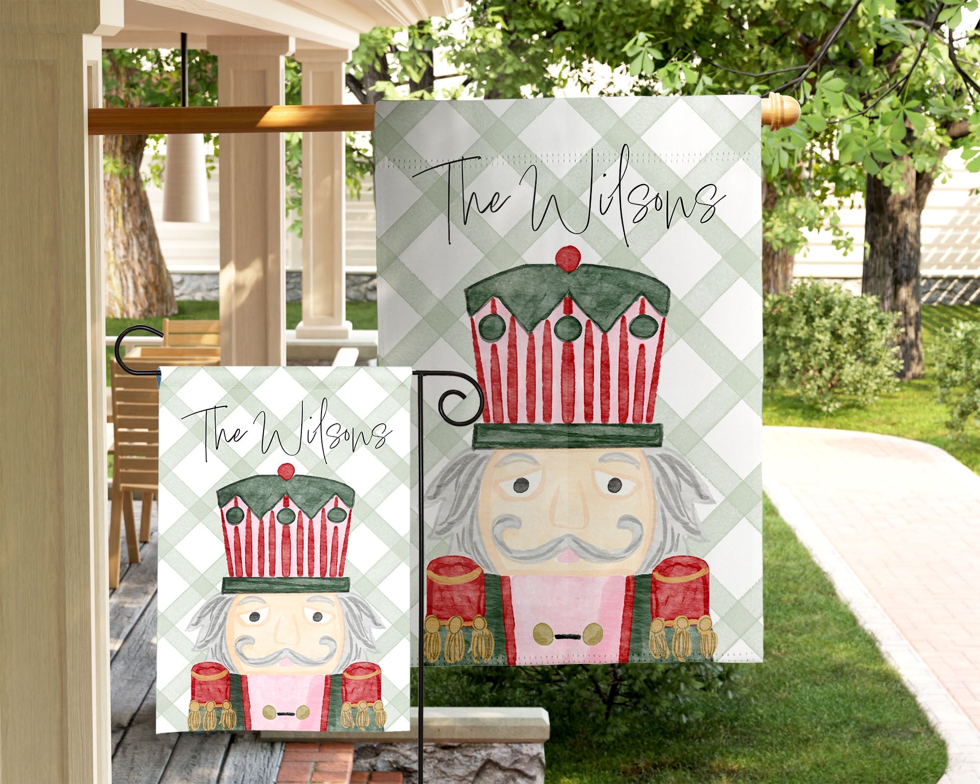 Personalized Nutcracker Soldier Garden Flag – Custom Christmas Yard Décor in Classic Red and Green